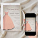 Esta celebração/convite de festas da quinceañera apresenta um belo vestido de rosa claro sobre um fundo bege com um quadro de ouro (não folha). Você pode personalizar todas as frases de texto ao seu gosto.