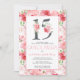 Convites Quinceañera Moderna Floral Cor-de-Rosa Elegante