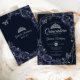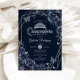 Navy blue and silver Quinceanera celebration invitation. Features, script font, glitter silver butterflies, watercolor roses and tiara. Perfect for an elegant princess style glam celebration. Personalize with your own details. Printed Zazzle invitations or instant download digital printable template.