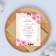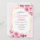 Este cartão de convite do Geométrico Pink e do Dourado Cerejeiro Quinceañera apresenta uma mistura moderna de tons cor-de-rosa suave e sotaques de ouro elegantes. As flores deliciadas de cereja são enquadradas por formas geométricas, criando um design chic e na moda que adiciona um toque contemporâneo à celebração tradicional. Perfeito para uma Quinceañera sofisticada e memorável.