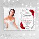 Convite de festas de prata e Quinceanera vermelha com sua foto. Apresenta fontes de script na moda, rosa vermelha, tiara e confetti. Design branco clássico com prata brilhante falso. Perfeito para uma elegante celebração de glam estilo princesa. Personalize com seus próprios detalhes. Impressos convites Zazzle ou modelo de impressão digital instantânea para download.