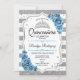 Convites Quinceanera - Prata Branca - Stripe Azul