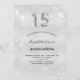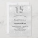 Um convite moderno, na moda e glamouroso para a Quinceañera, festa de aniversário 15. Um fundo com aparência de prata falsa, decorado com poeira brilhante. Personalize e adicione o seu nome e detalhes da festa. O número 15 é escrito com uma fonte de estilo balão, script.