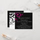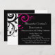 Quinceañera (15 Aniversário) Quince años convida a preto-e-branco com o sotaque magenta/fuchsia inverso, com fundo de folha de rolagem gráfico ousado. Itens correspondentes disponíveis.Copyright © www.CustomInvitesOnline.com
