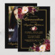Convocação para Quinceanera Floral Preto e Dourado da Cloridora Burgundia - Quadro Dourado - Script Dourado - Foto de Volta