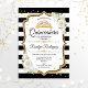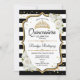 Dourado convite para comemoração da Quinceanera branca e negra. Apresenta faixas, fontes de script, rosas brancas, tiara e confetti. Design clássico com ouro falso brilhante. Perfeito para uma elegante celebração de glam.