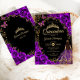 Convite para comemoração de Quinceanera, preto, roxo e ouro. Apresenta uma garota morena em vestidos de capa de bola, fonte de script, borboletas de ouro, rosas de aquarela e tiara. Perfeito para uma elegante celebração de glam estilo princesa. Personalize com seus próprios detalhes. Impressos convites Zazzle ou modelo de impressão digital instantânea para download.