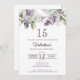 Lilases púrpuras de aquarela suave criam um convite bonito de aniversário da Quinceanera. A tipografia adiciona uma víbora, retrô víbora. Todo o texto é editável para que você possa definir o tom certo. Você também pode mudar fontes e cores facilmente. Este convite de aniversário da Quinceanera está disponível tanto no estoque de papelão tradicional como numa versão para download. Faz parte da coleção Purple Primavera Lilac Flower. Ele permite que você escolha um tema e, em seguida, crie facilmente um conjunto único de convites, sinais de boas-vindas e decorações de festas. O planejamento de festas torna-se divertido e agradável.