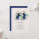 Champanhe de marfim para convite floral da Quinceanera, marinho azul real e ouro. O design apresenta um número de ouro 15, decorado com rosas reais azuis, azuis marinhos e marfim, verde, folhas de eucalipto e douradas. Procure na minha loja estilos de alternativo e acessórios correspondentes.