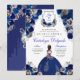 Convites Quinceañera Real Azul e Silver Floral Elegante