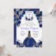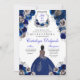 Convite de Aniversário da Quinceanera Floral Real Azul e Prata