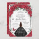 Convites Quinceañera Red Floral Negra Vintage Silver
