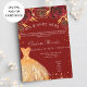 Um convite moderno, na moda e glamouroso para uma Quinceañera, festa de aniversário 15. Um fundo vermelho com pó de ouro falso, um vestido e rosas vermelhas, florais. O nome é escrito com um moderno estilo escrito à mão. Personalize e adicione os detalhes da sua festa.