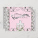 Lindas rosas cor-de-rosa e elegante convite para Quinceanera, prata e cruz branca. Este elegante convite para a Quinceanera, cor-de-rosa e cinza, é facilmente personalizado para o seu evento por botão para começar a adicionar os detalhes do seu evento no estilo de letra, tamanho de letra e cor e redação da sua escolha. Este é um design gráfico impresso sem joias, arcos, levantadas, gravadas ou acrescentadas peças ou peças. Alguns gráficos gráficos ©BELGA-Dodles.
