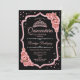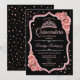 Convite para comemoração da Quinceanera, rosa de ouro negro. Apresenta fontes de script, rosas cor-de-rosa, tiara e confetti. Design clássico com ouro de rosa brilhante falso. Perfeito para uma elegante celebração de glam.