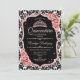 Convite à celebração de Quinceanera, preto de ouro rosa. Apresenta cor damasco, fonte de script, rosas rosa, tiara e confetti. Design clássico com ouro de rosa brilhante falso. Perfeito para uma elegante celebração de glam.