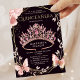 Convites Quinceañera Rosa Tiara Borboleta Floral Elegante