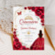Convites Quinceanera Rosa vermelha Vestido Dourado