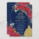 Convites Quinceañera Rosas vermelhas Princesa Amarelo Azul