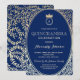 Convites Quinceanera Royal Blue e Princesa Dourada Monogram