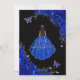 Royal blue black and silver Quinceanera celebration invitation. Features brunette girl in ball gown dress, script font, silver butterflies, watercolor roses and tiara. Perfect for an elegant princess style glam celebration. Personalize with your own details. Printed Zazzle invitations or instant download digital printable template.