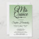 Um convite de 15 anos do moderno design verde-sábio Quinceañera apresenta o texto "Mis Quince" na caligrafia manuscrita em chic. Convite de aniversário perfeito para uma na moda Quinceañera, perfeito para ela, a modista que ama padrões e estilo modernos. Desenvolvido exclusivamente para você pelo Happy Dolphin Studio.