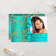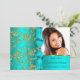 Convites Quinceanera Teal Blue Dourado Damask Foto Floral