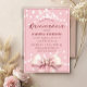 Convite de aniversário da Elegante Quinceanera, com um diamante tiara e um arco com flores em fundo rosa. ++++++++++++++++++++ Fácil de personalizar com seus detalhes. Adequado para festas de aniversário de 15 de primavera ou de jardim de verão.