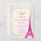 PixDezines quinceanera com a Torre Eiffel em sotaque cor-de-rosa neonatal com ouro falso para coroa e cordas cardíacas da Princesa Parisiense, e uma fonte de pincel na moda.. O plano de fundo do amortecedor pérola também é removível. Também adicionamos legal decodificadores de tinta dourada.