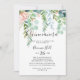 Este convite floral tropical ilustrado de cor Quinceañera é perfeito para uma festa de aniversário 15 moderna. Os design ilustram flores brancas, amarelas, cor-de-rosa, pinceladas com lindas folhas verdes de cor aquosa, inspiradoras elegância.