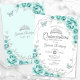 Convites Quinceanera Turquesa Floral Silver