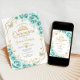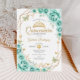 Turquesa, ouro e Quinceanera branca. Recursos, fontes de script, borboletas douradas, rosas verdes com aquarela e tiara. Perfeito para uma elegante celebração de glam estilo princesa. Personalize com seus próprios detalhes. Impressos convites Zazzle ou modelo de impressão digital instantânea para download.