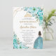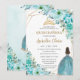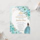Convites Quinceañera Turquoise Green Floral Princesa Dourad
