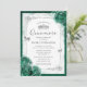 Crie seus próprios convites elegantes de prata e quinceanera verde que são fáceis de personalizar para uma festa de aniversário doce 15 de "uma vez por vez" memorável ou outra ocasião especial. O design de conto de fadas bonito apresenta rosas verdes esmeraldas luxuosas de cor d'água e a arte de confetti de borboleta prateada pela Raphaela Wilson. A borda do rolo de rolagem do rico filigree destaca o papel de pergaminho branco vintage na frente e atrás da placa. Ao personalizar ainda mais este design real único, outras opções criativas podem ser reveladas. Isso inclui opções para mudar a escrita da caligrafia e a tipografia moderna, e também as cores para os gráficos svg (princesa coroa tiara, belas borboletas e padrão de rosa). Se você quiser iluminar as coisas, você pode esconder a camada que tem o gradiente preto ombre desvanecido. Use estes convites personalizados para uma quinceañera prateada e verde, casamentos verdes esmeraldas, uma doce festa de aniversário de conto de fadas 16, uma chá de fraldas princesa para uma menina, um chá de panela e outros tipos de festas onde se deseja um tema prata e verde. Com muito espaço ao fundo nestes elegantes convites para quinceanera, adicione informação adicional para eventos, uma imagem de Mis Quince Anos, ou simplesmente deixe-a vazio. Inverno, verão, primavera, ou outono, estes bonitos convites para aquarela quinceanera podem adicionar essa beleza e brilho ao seu grande dia - desfrute! Categoria: convites florais para quinceanera; convites para casamento modelo verde e prateado; e convites modernos para quinceanera para filha. Legal paleta de cor verde-prateado: cor clara, horta assada pelo sol, azul, verde-esmeralda escuro, branco-gelo, prata e preto.