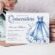 Entra num encantador reino de elegância e graça com o nosso convite à aquañera moderno Quinceañera, delicadamente infundida com matizes de marinho e sotaques azuis radiantes. Adortado com um vestido resplendor, intricadamente entrelaçado com delicados motivos florais, colocado contra um pano de fundo de azul mole, esse convite expele a sofisticação do eterno. Personalize com um nome, detalhes de celebração. O tipo de fonte e a cor podem ser modificados.