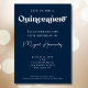 Marque um marco com o nosso elegante Convite Quinceañero para o ilustre jovem na sua vida. Apresentando uma tipografia simples e ousada em marinhos e cinzas brancas, este convite expele sofisticação e estilo. Personalize os detalhes e convide os entes queridos a se juntarem à celebração desse momento significativo. Ordem agora para colocar a palco de um Quinceañero cheio de memórias que durarão uma vida inteira.