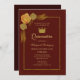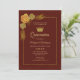 A design mostra um clássico convite elegante para quinceanera em tipografia de ouro e caligrafia com fundo burgundy. O design é extremamente chique. Clique em " edit using design tool" (editar usando a ferramenta) para ajustar as colocações dos textos.