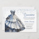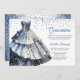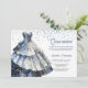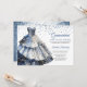 Um elegante convite de aniversário de Quinceanera com um profundo vestido azul com brilho azul em cascata, e um candelabro nas costas. Disponível em impressão, como download digital ou ambos.