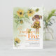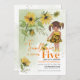 Embarque a beleza dos girassóis com o raio de sol, a flor perfeita para a sua pequena quinta festa de aniversário. Este convite apresenta girassóis feitos à mão e uma garotinha bonitinha com girassóis no cabelo e girassóis em seu lindo vestido preto e amarelo. Este é um trabalho artístico original feito com aquarela. Verifique nossa coleção de Aniversário da Menina de Cana Solar para ver os itens coordenados.