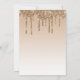 Este convite da moda quinceañera apresenta uma borda de brilho de ouro brilhante e borda ombre. As palavras "Quinceañera" e o nome do convidado de honra aparecem na escrita casual de ouro. No verso aparece o mesmo design de gotejamento dourado.