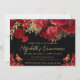 Aquarela Elegante Vermelha e Douradas Flores e borboletas design com fundo preto.