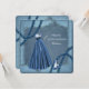Lindo vestido de baile azul bebê, sapatos azul claro de salto alto e pérolas azul bebê em um fundo azul bebê convite de Quinceanera. Este elegante convite de Quinceanera azul-ardósia é facilmente personalizado para o seu evento, bastando adicionar os detalhes do evento, estilo de letra, tamanho e cor da fonte e texto. Por favor, observe que todos os adesivos, cartões e desenhos de convites que você encontrará no Zazzle são gráficos impressos sem joias, laços, relevos, relevos ou peças ou partes adicionadas.