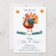 Seja o anfitrião da última reunião de Ação de Graças com este convite alegre e festivo "Gobble até você Wobble". Apresentando um peru colorido de água sobre um fundo com folhas vibrantes do outono, este convite lúdico é perfeito para dar o tom ao seu banquete de férias. A design convida os convidados a se reunirem para uma celebração cheia de risos, comidas e comunidades. Ideal para reuniões casuais da família ou festas maiores de Ação de Graças, este cartão garante que seus convidados saibam que é hora de comer, relaxar e aproveitar. Os detalhes do convite são personalizáveis, incluindo a data, a hora e a localização, e fazer-o como um meio para adaptar este convite ao seu evento especial. Perfeito para os anfitriões que querem impressionar com um convite criativo e caloroso enquanto difundem a alegria de Ação de Graças.