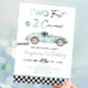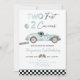 Este convite adorável apresenta um carro azul de corrida de aquarelas.
