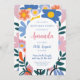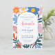 Celebre um dia especial com este vibrante design floral! Flores cor-de-rosa-claro, laranja e azuis com folhas verdes esmagadas criam uma atmosfera alegre para uma festa de aniversário. Adicione o seu nome e detalhes de evento a artesanato de uma excelente manutenção. É uma maneira perfeita de convidar convidados para um dia de riso e celebração!