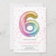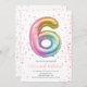 Convite para Número de Festa de Rapariga de Aniversário do 6 de Balão do Rainbow Personalizar este convite com o texto utilizando o botão Editar para personalizar os seus convites.