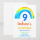 Meninos 9º convite de aniversário, azul-arco-íris e cores primárias.