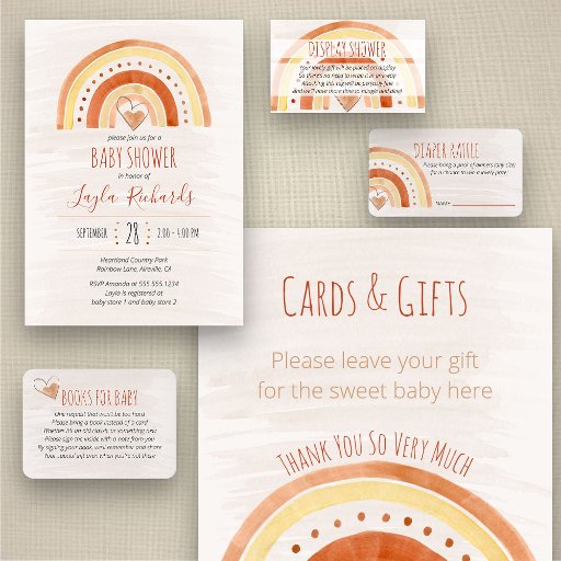 Simples e giro, chá de fraldas, convite. Este design neutro de gênero tem uma paleta de cor suja quente e apresenta uma lavagem a cores aquáticas em tons suaves naturais com arco-íris de rabisco e coração de amor em tons retrorreflectores vintage de laranja queimada, pincel, especiarias e amarelo. Baby Sprinkle é escrito em tipografia de fontes esbranquiçada e esbranquiçada, enquanto os nomes dos pais estão em elegante roteiro manuscrito. O poema é totalmente editável e atualmente lê-se "Big Sister [nome] tem muito a compartilhar, é apenas um borrão para mostrar que nos importamos! Não é preciso muito, só o básico o fará, como fraldas, toalhetes, cartões-presente e uma ou duas roupas." Um design gentil e doce - perfeito para uma menina ou um bebê.