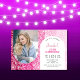 Listras cor-de-rosa com convite de aniversário design floral com sua foto na frente da placa. Simples trendy convida cartão perfeito para uma festa de na moda. Pode ser personalizado para qualquer idade.