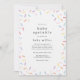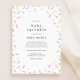 Um convite para bebês borrifados apresenta borbulhas coloridas. Personalize com seu texto. Clique em "Personalizar mais" para editar o estilo, o tamanho e a cor da fonte, se desejar.
